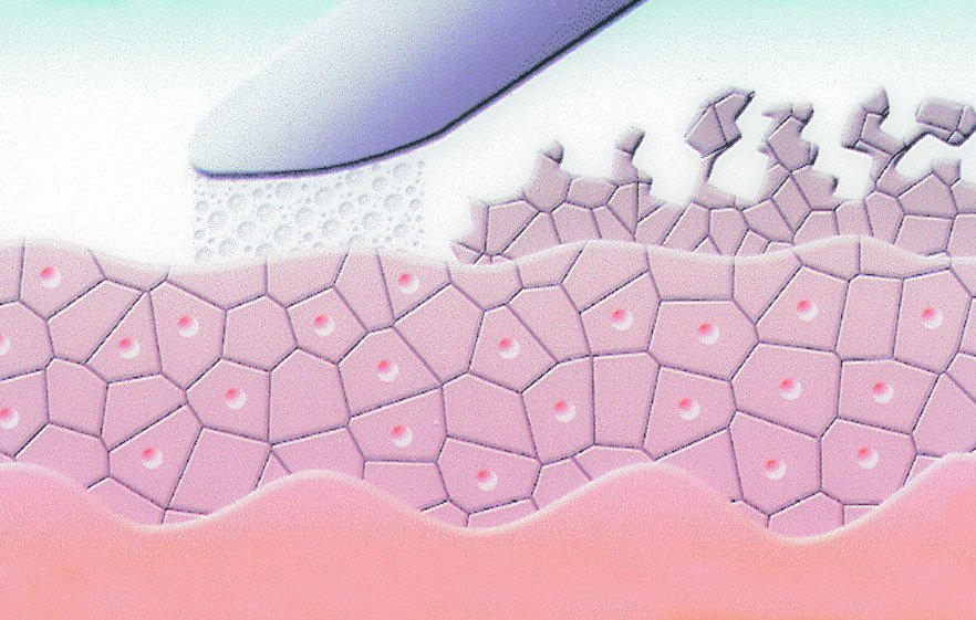 - Verfeinerung u. Glättung des Hautreliefs, Poren und Fältchen erscheinen feiner